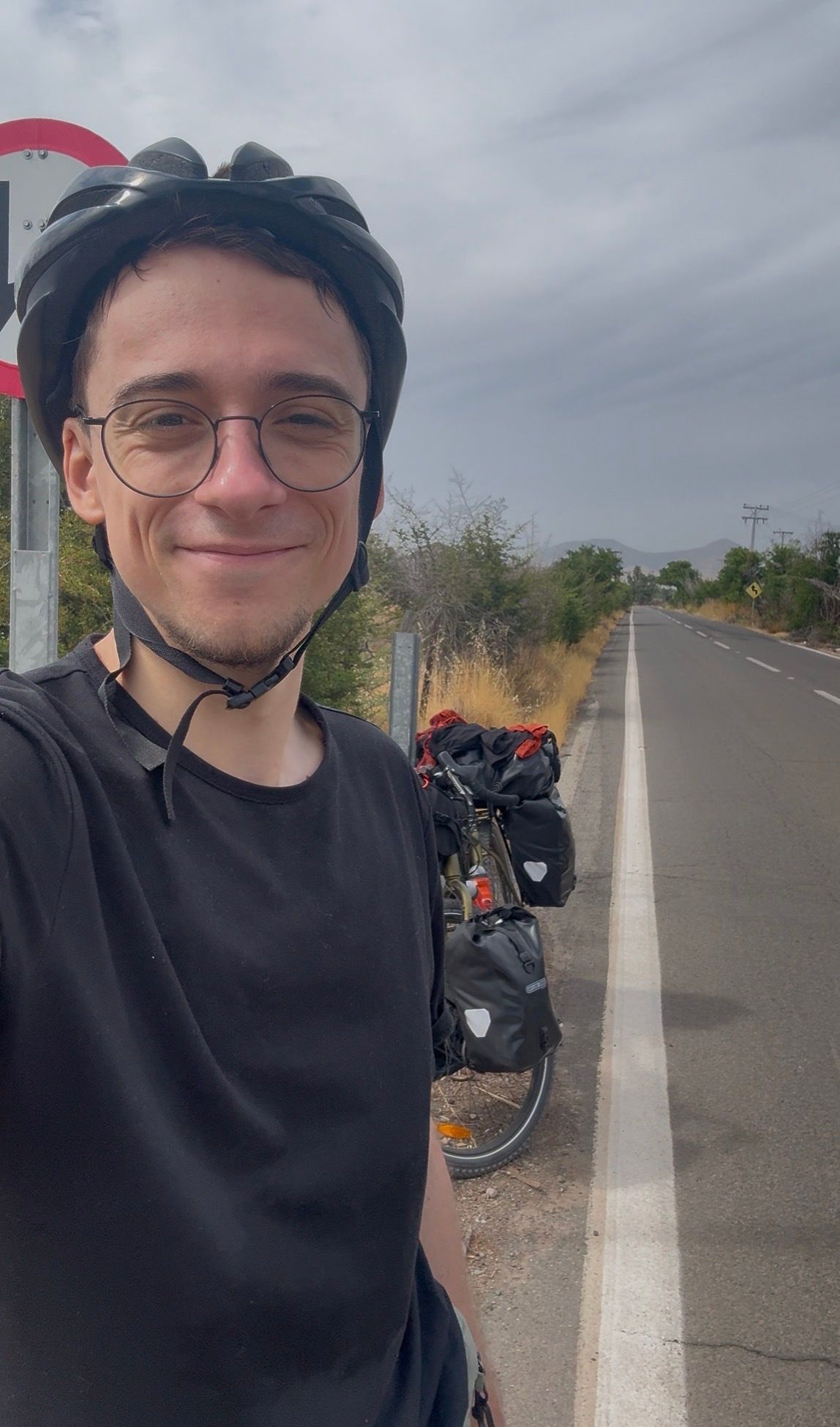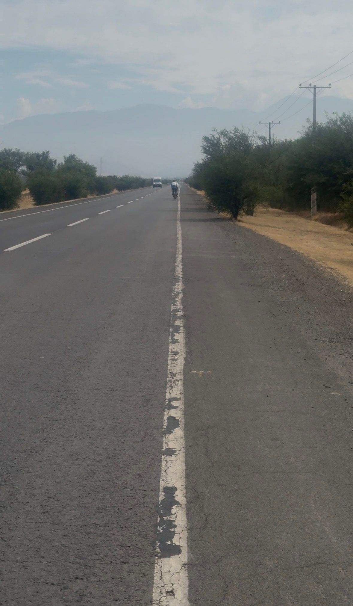 The real challenge today was the heat. Cycling for 6 hours at 30 degrees without any shade, felt like pedaling inside an oven. But 5 liters of water later, under the chance of being caught by a very heavy storm, I reached the end of my day in the city Los Andes