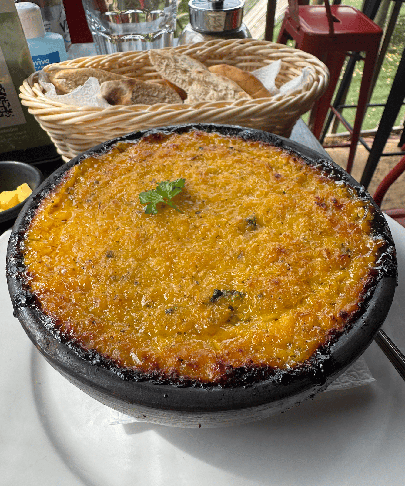 After finishing my climb I stoped at a restaurant for a lunch number 2. Believe me, I need second and third lunches when you do this kind of effort! Plus, Chilean food is amazing. It is so different compared to what I’m used to, but also delicious. Today I had a pastel de choclo which is a dish made with a sweet corn (choclo) topping baked over a savory filling, usually including round beef, onion, eggs, olives. (Honestly, it was like a South American version of a musaka.